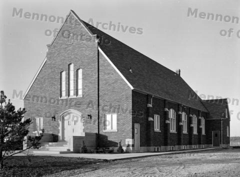 Photo: Preston Mennonite Church in Cambridge, Ontario. Dedicated on May 16, 1954. Hunsberger (David) photo 31-53