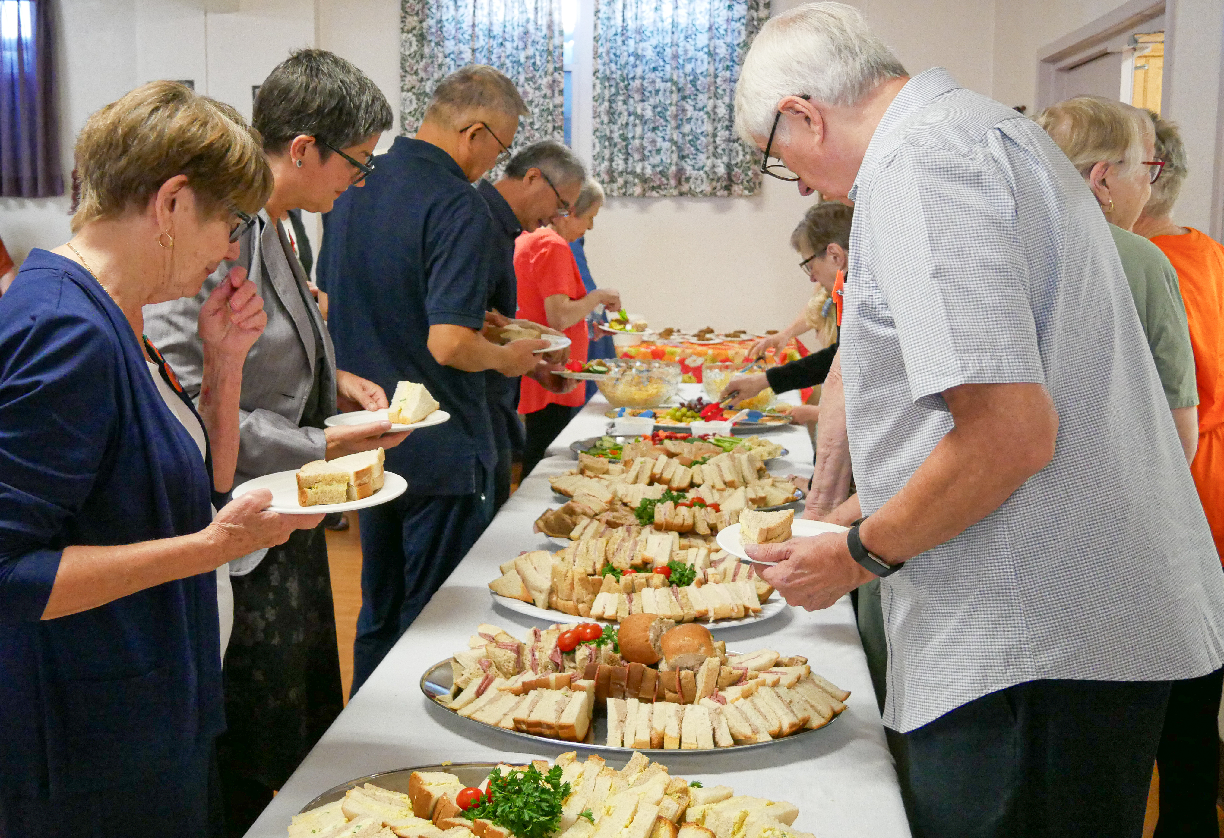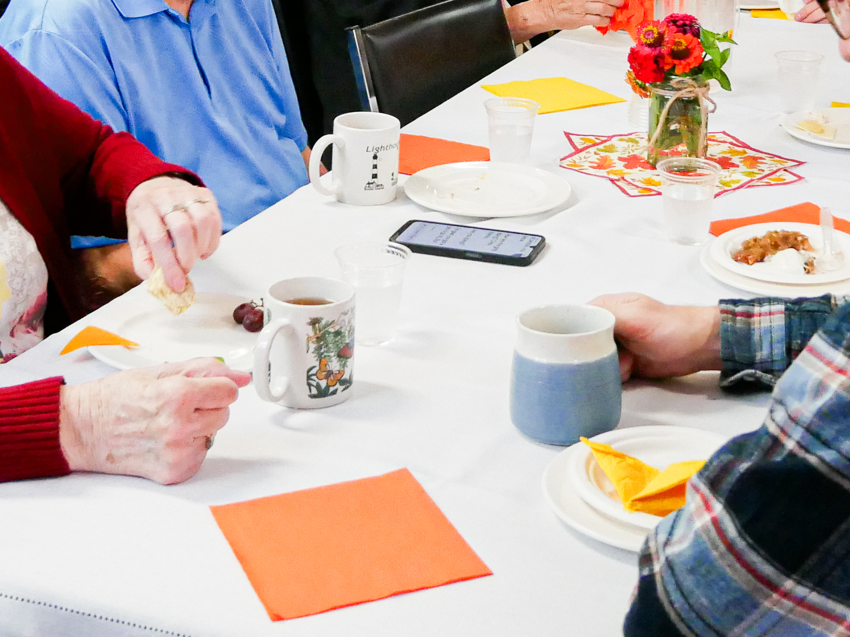 The best way to get to know each other is over food. Whenever we're hosting a potluck, we encourage everyone to join in the lower fellowship hall for a potluck meal. If you're not familiar with a potluck, it is where everyone brings a dish, side or desert to share. It's always fun, and always delicious!